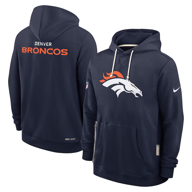 Men's Navy Denver Broncos Sideline Standard Issue Initial Home Dri-FIT Pullover Hoodie